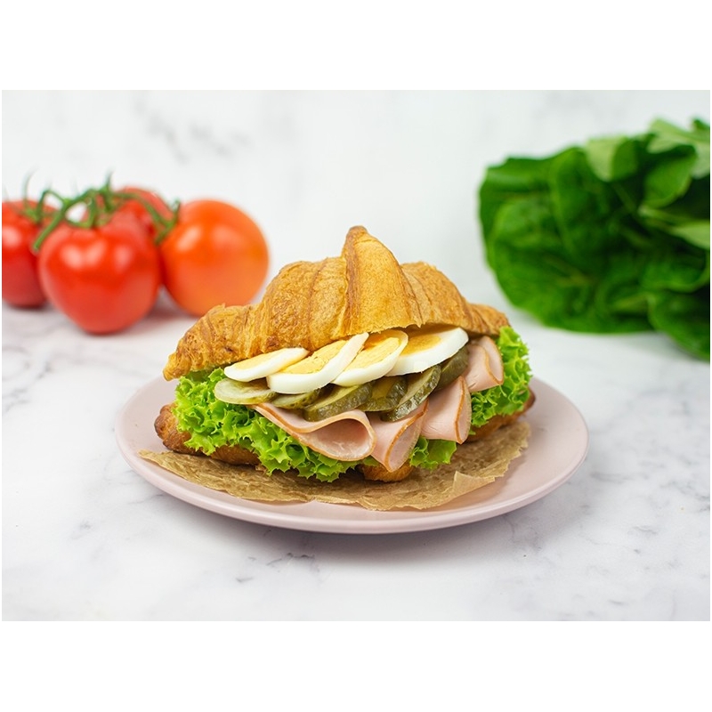 CROISSANT DAILY - z szynką sopocką, jajkiem, ogórkiem konserwowym i sałatą rzymską